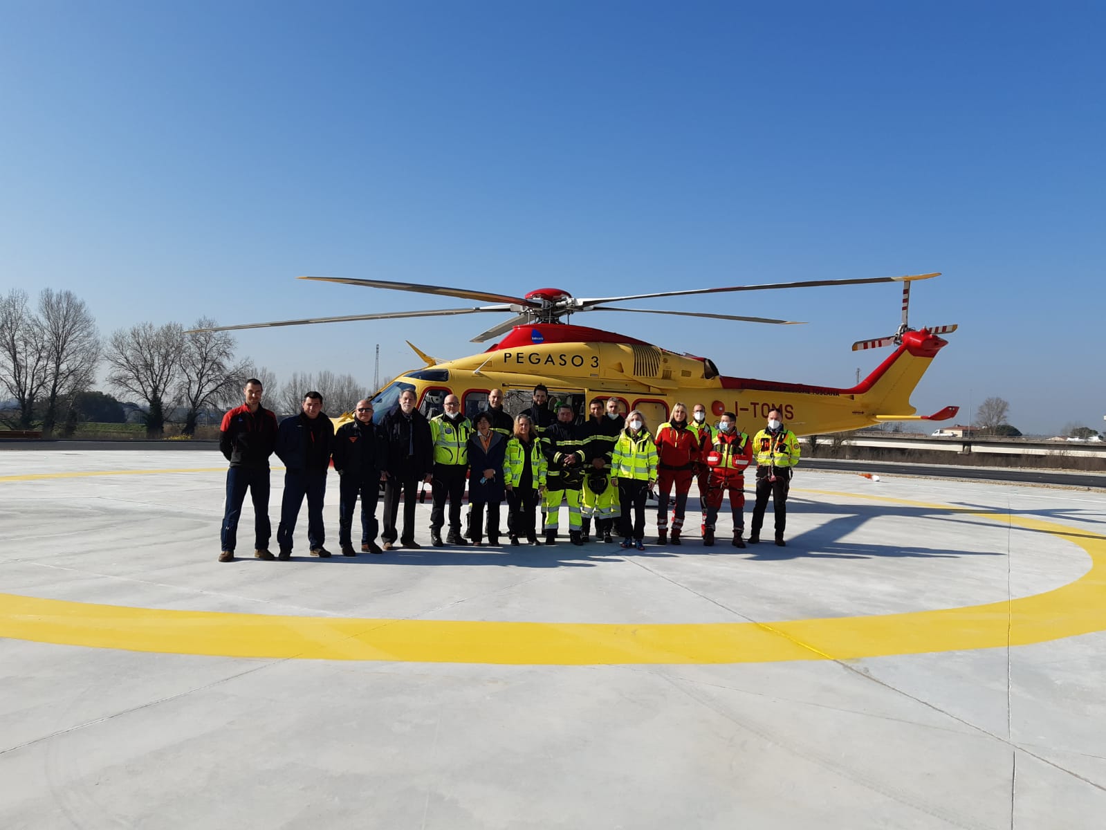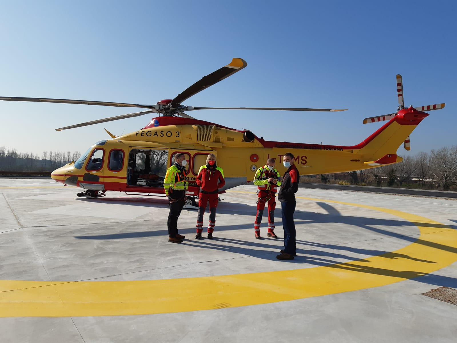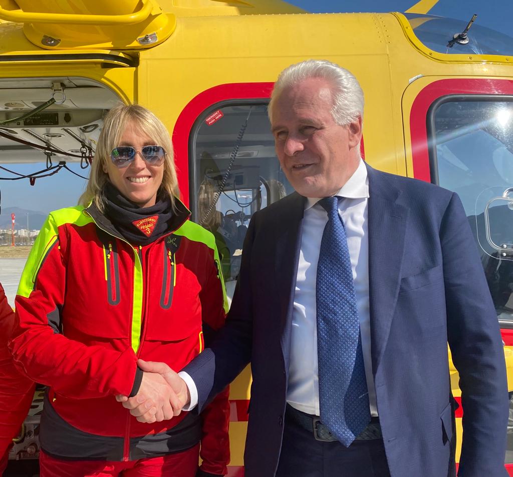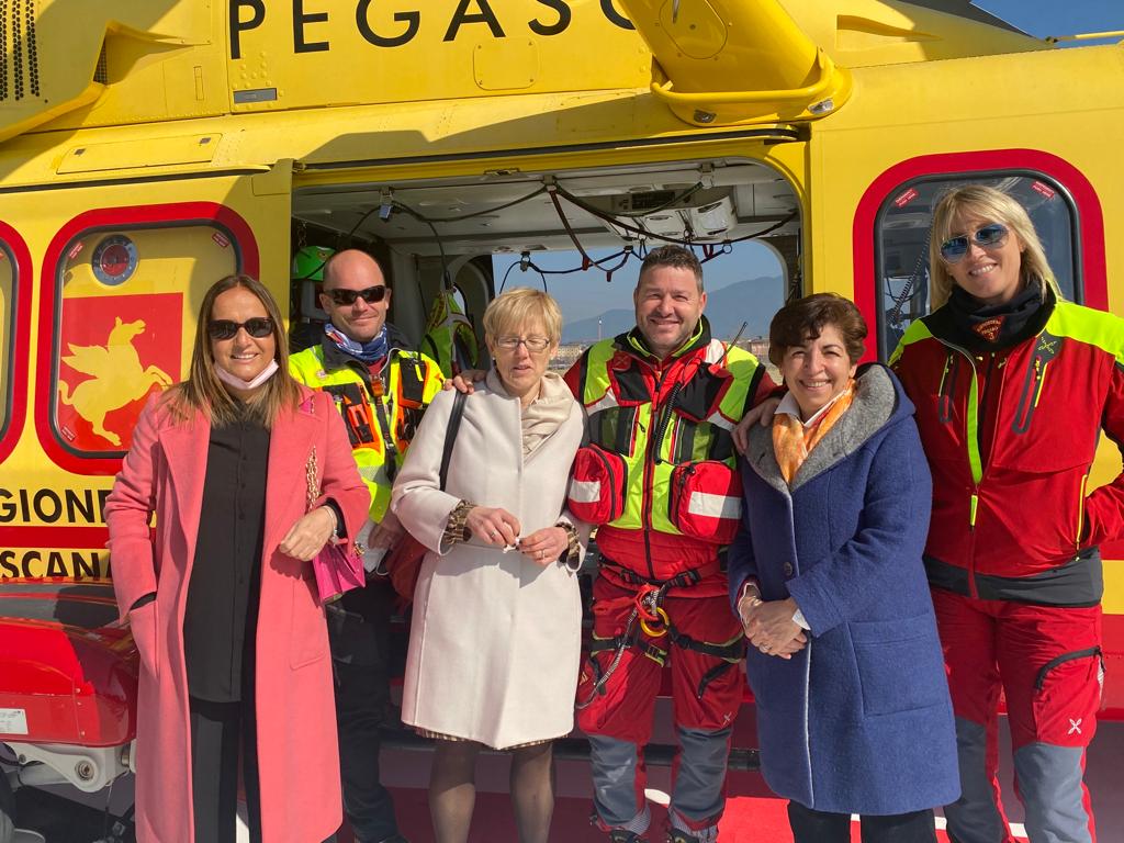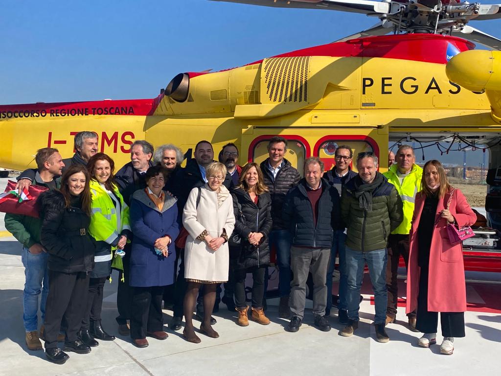 Questa mattina c’è stata l’inaugurazione con l’atterraggio di prova dell’elicottero Pegaso 3 con l’equipaggio al completo, alla presenza del presidente della Regione Toscana Eugenio Giani accompagnato dal presidente del consiglio regionale Antonio Mazzeo e tutte le autorità civili e militari per il taglio del nastro e la benedizione dell’arcivescovo di Pisa Giovanni Paolo Benotto.