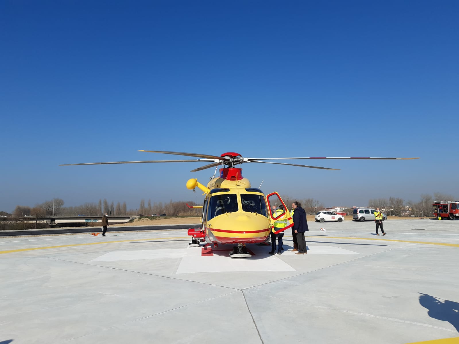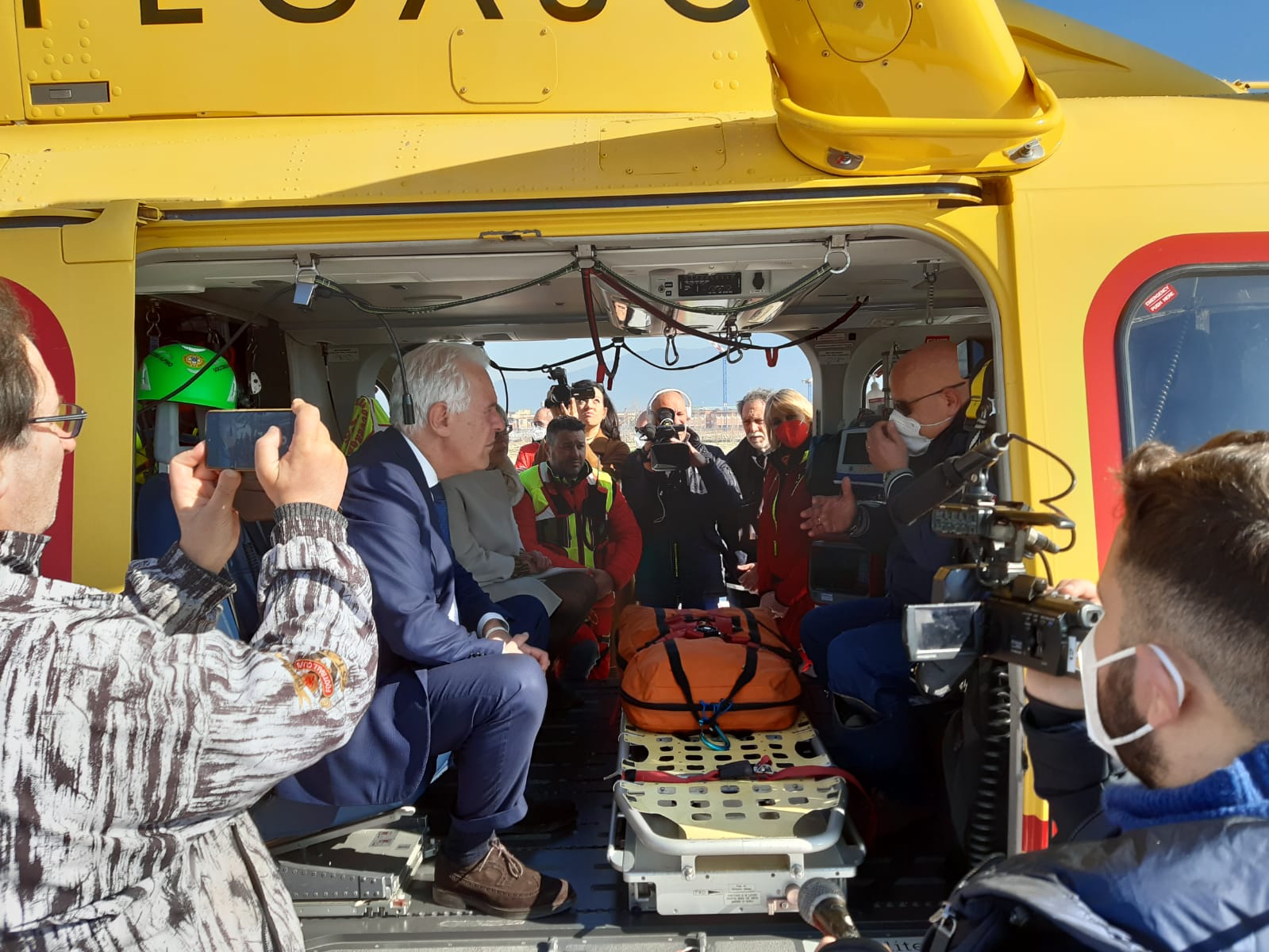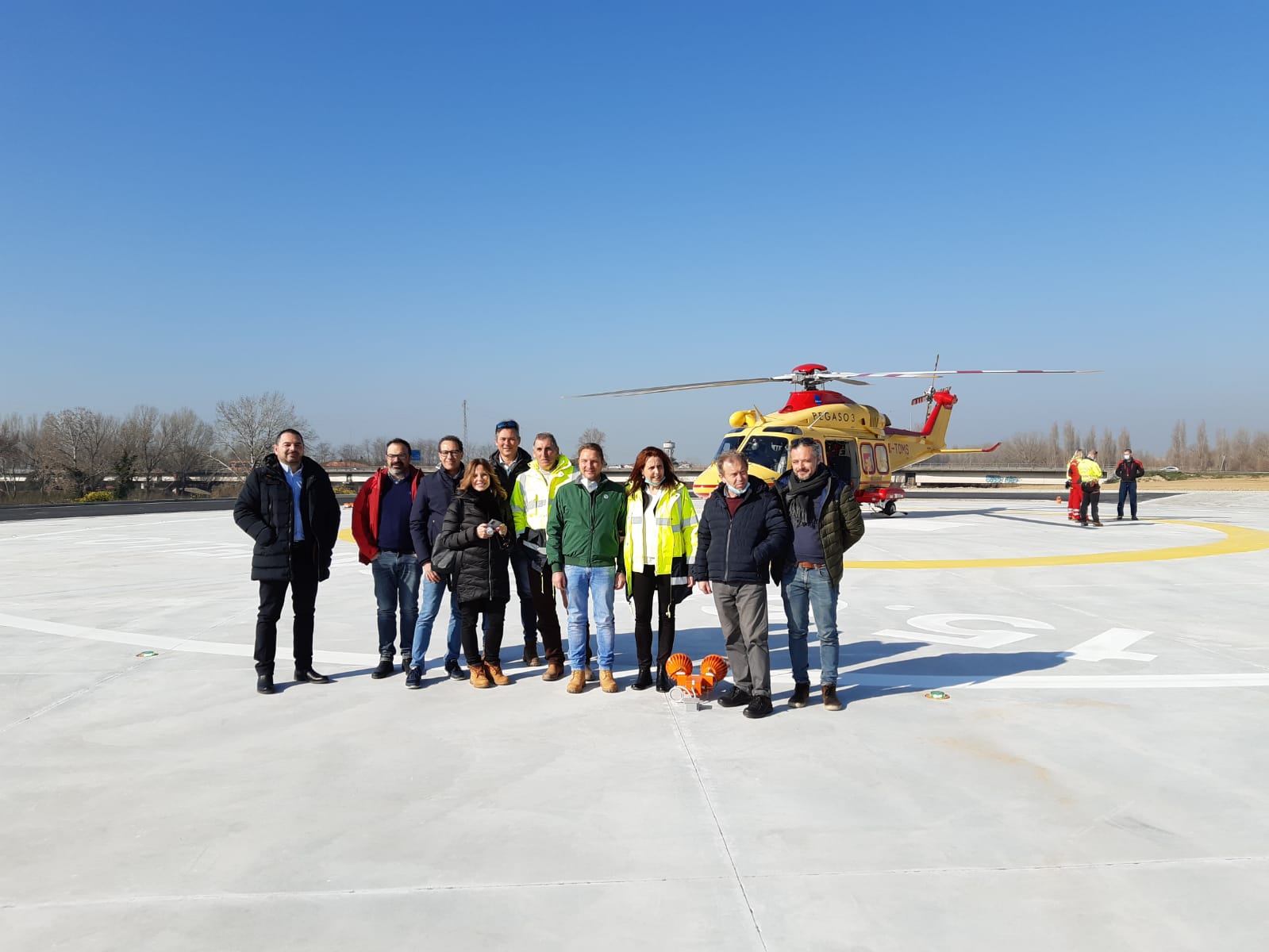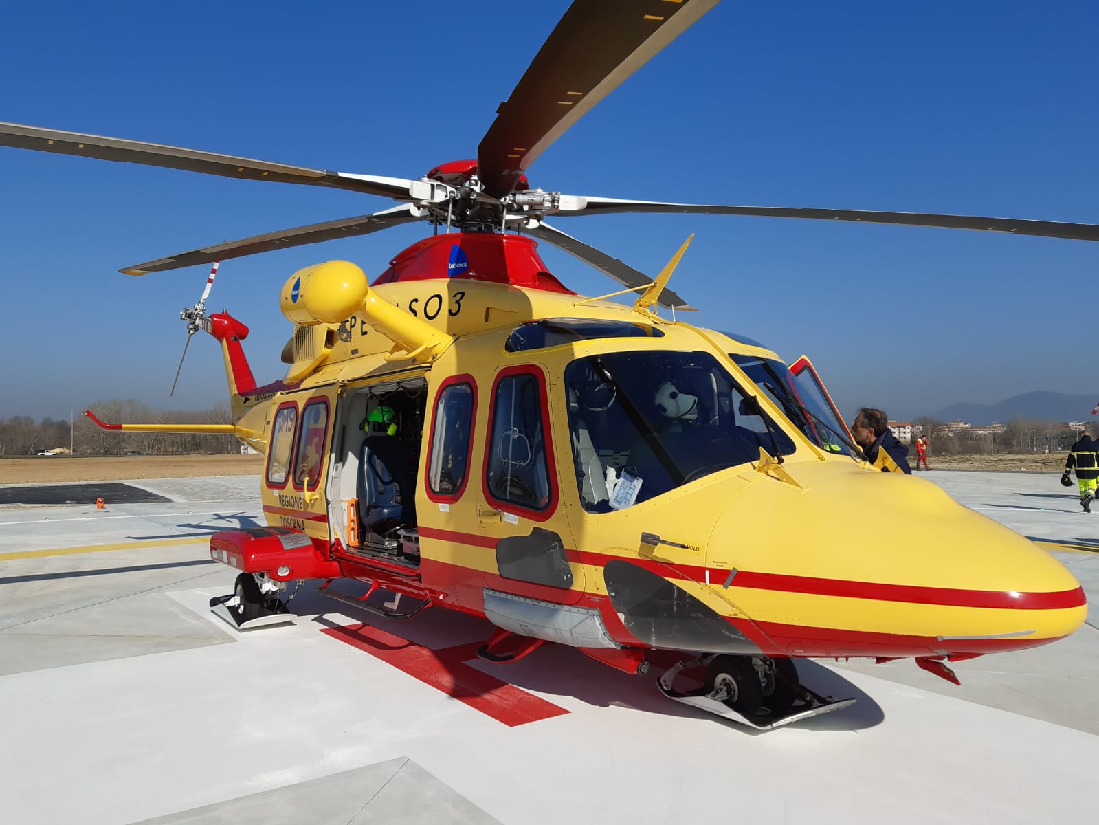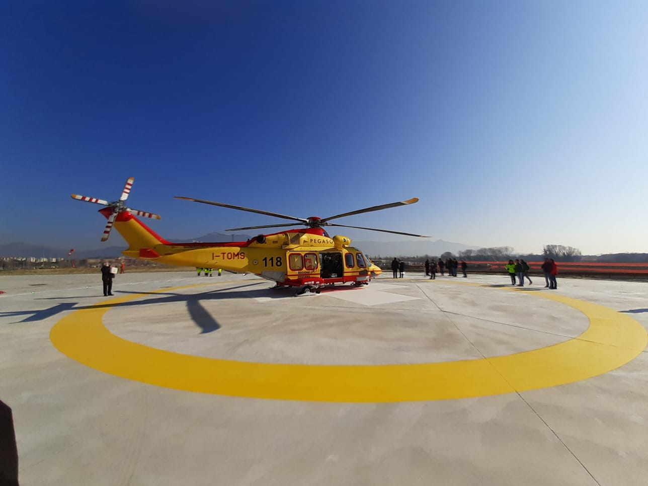 Questa mattina c’è stata l’inaugurazione con l’atterraggio di prova dell’elicottero Pegaso 3 con l’equipaggio al completo, alla presenza del presidente della Regione Toscana Eugenio Giani accompagnato dal presidente del consiglio regionale Antonio Mazzeo e tutte le autorità civili e militari per il taglio del nastro e la benedizione dell’arcivescovo di Pisa Giovanni Paolo Benotto.