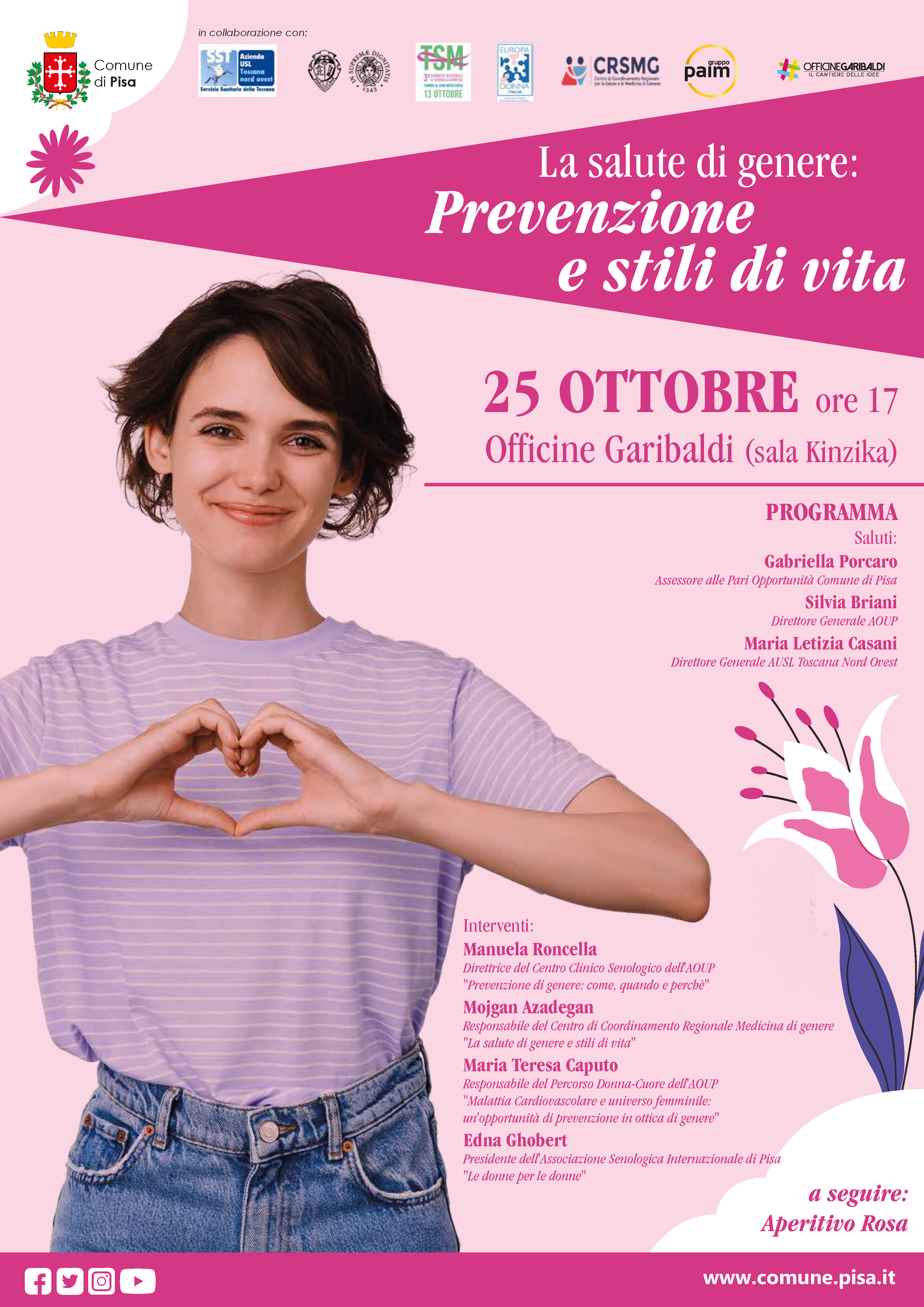 Mercoledì 25 ottobre, alle 17, le Officine Garibaldi (via Gioberti 39, Pisa) ospiteranno il convegno “La salute di genere: prevenzione e stili di vita”, promosso dal Comune di Pisa.