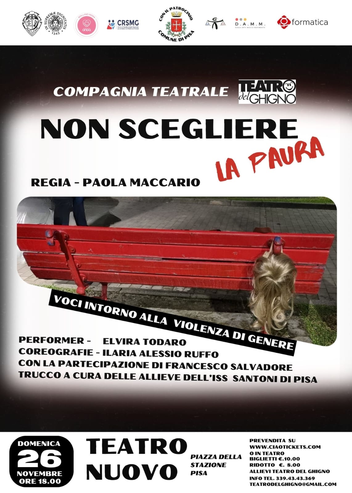 Il 26 novembre: Spettacolo teatrale realizzato dalla compagnia del “Teatro del Ghigno” (regia di Paola Maccario) dalle 18 alle 20 al Teatro Nuovo in Piazza della Stazione, 16 a Pisa.