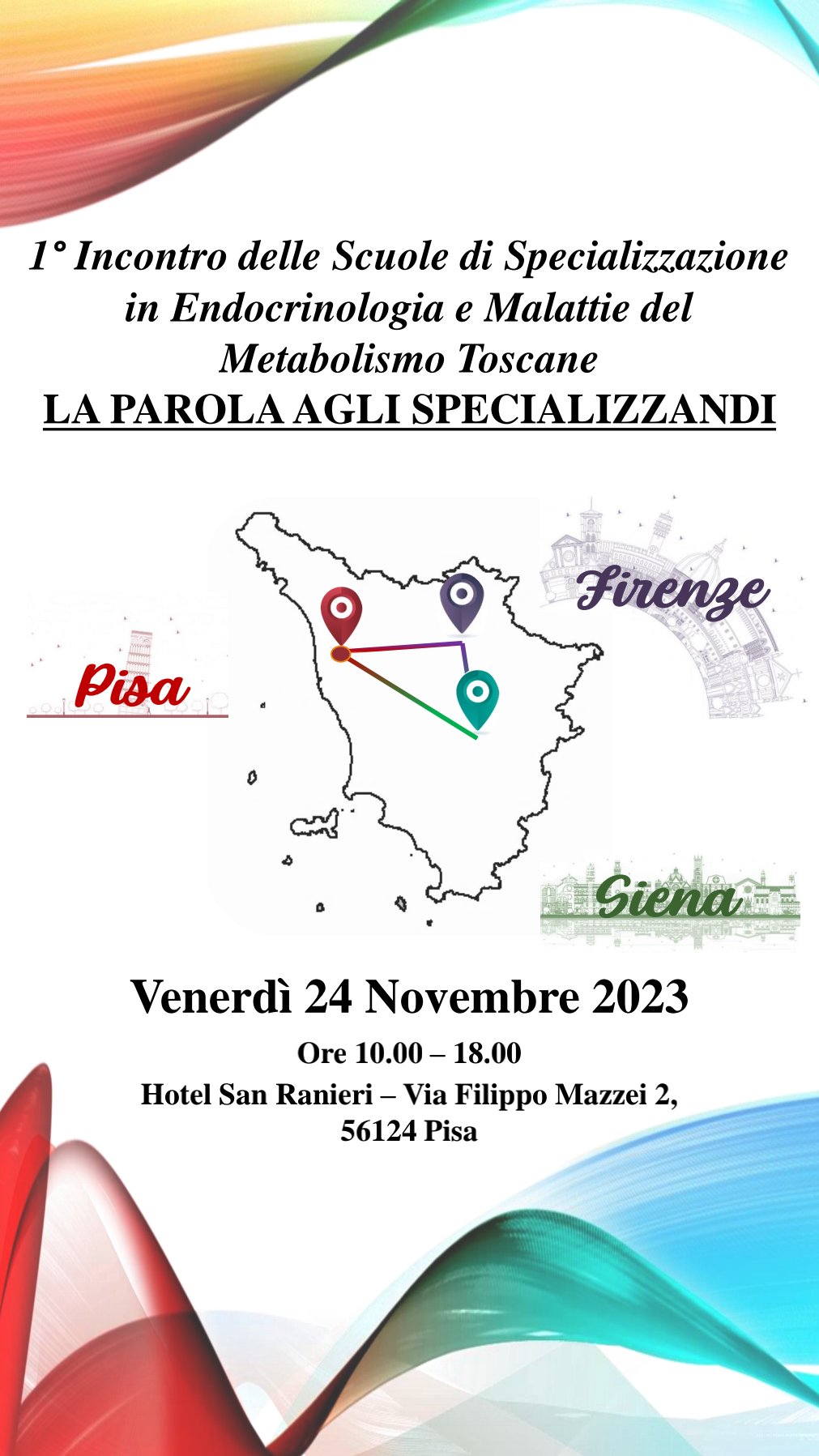 Si è svolto recentemente il primo incontro scientifico degli specializzandi delle tre scuole di specializzazione in Endocrinologia e metabolismo di Pisa, Firenze e Siena. L’evento, che ha riscosso molto successo, è stato voluto e organizzato dagli stessi specialisti in formazione che hanno redatto il programma scientifico facendo essi stessi da relatori e moderatori (iscritti al III e IV anno). Presenti anche i direttori delle scuole, il professore Piero Marchetti (in uscita) e la professoressa Rossella Elisei (in entrata) per la scuola di Pisa, la professoressa Maria Grazia Castagna per la scuola di Siena e la professoressa Giulia Rastrelli per quella di Firenze. L'auspicio espresso da tutti è di ripetere l'evento in quanto capace di stimolare nei giovani e futuri endocrinologi le capacità critiche e l’interesse all'innovazione e di creare una rete tra gli specialisti molto utile per il confronto anche una volta usciti dalle scuole e impegnati nella pratica clinica.