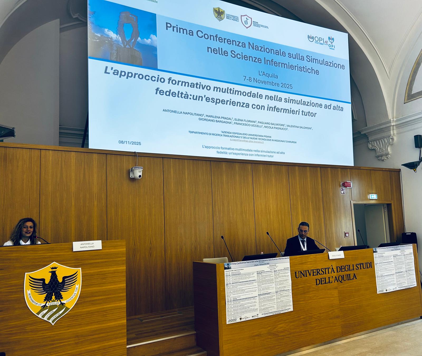 Per l’Azienda ospedaliero-universitaria pisana e l’Università di Pisa hanno partecipato alla conferenza Antonella Napolitano, Valentina Salomoni e Nicola Pagnucci, che hanno presentato: una comunicazione orale dedicata allo sviluppo di percorsi formativi innovativi per la formazione dei tutor infermieristici (L’approccio formativo multimodale nella simulazione ad alta fedeltà: un’esperienza con infermieri tutor) e un poster che ha illustrato i risultati di una ricerca sull’efficacia della simulazione nella didattica delle competenze numeriche e di sicurezza farmacologica (Apprendimento delle competenze di calcolo farmacologico negli studenti infermieri attraverso la simulazione: uno studio pre-post).
