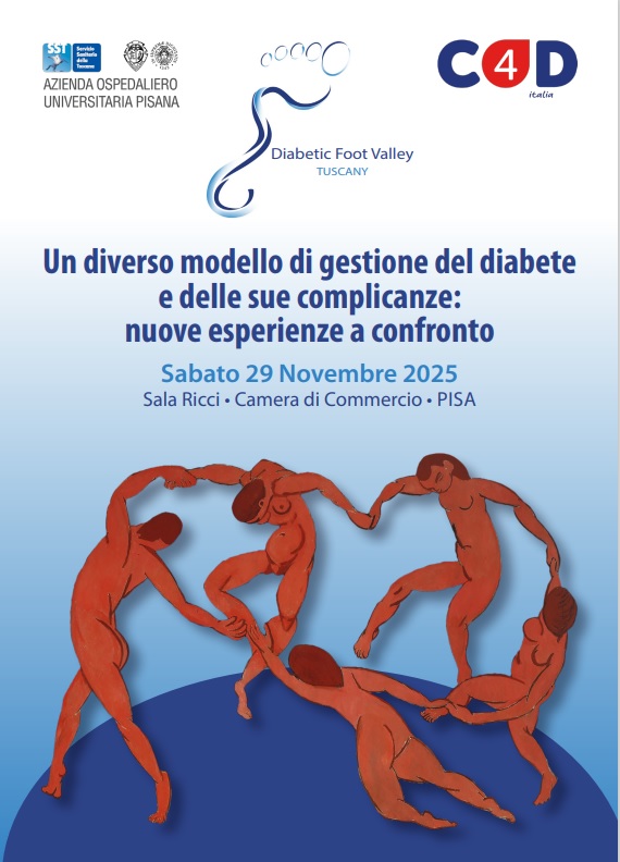 Sabato 29 novembre si tiene a Pisa, nella Sala Ricci della Camera di commercio (Piazza Vittorio Emanuele II, 5 - inizio alle 8.30), il convegno dal titolo: "Un diverso modello di gestione del diabete e delle sue complicanze: nuove esperienze a confronto", organizzato dalla Sezione dipartimentale Piede diabetico dell'Aoup.